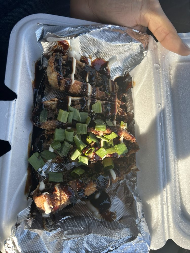 Six jerk-flavored chicken wings, choice of jerk honey hot, jerk honey bbq, or jerk cajun hot. Two egg rolls with choice of jerk chicken or jerk philly cheesesteak filling. Includes a side: options range from steam cabbage to sweet potato waffle fries.